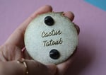 Grand format : 6 cm de diamètre environ + 2 attaches noires en plastique au dos